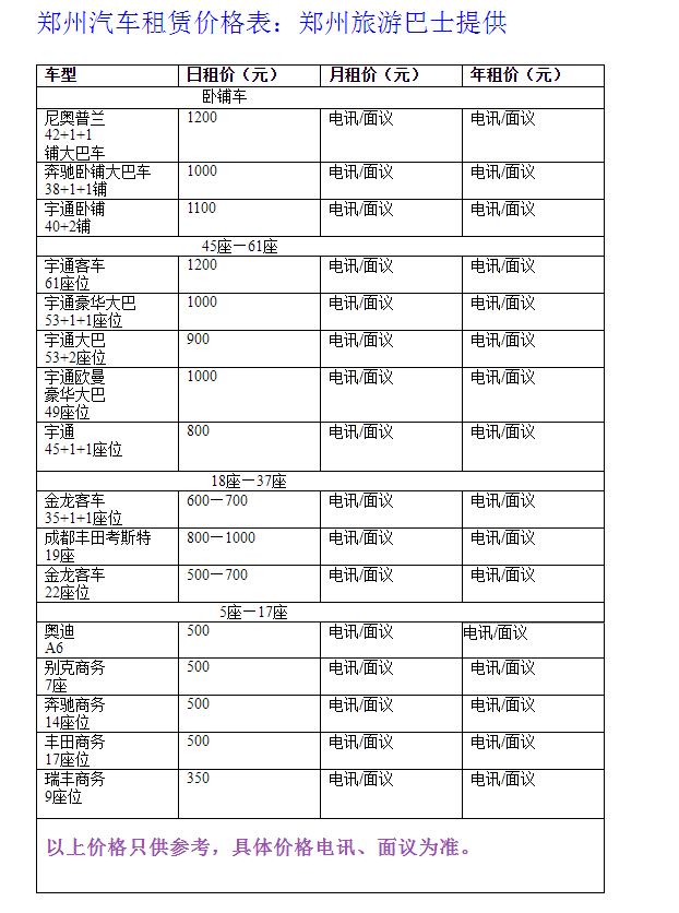 專業(yè)從事:鄭州大巴車出租、鄭州中巴車租賃、鄭州大巴包車、鄭州班車出租、鄭州通勤車出租服務(wù)、鄭州會(huì)議租車、鄭州旅游包車,機(jī)場(chǎng),高鐵、火車、市內(nèi)接送等等業(yè)務(wù)
